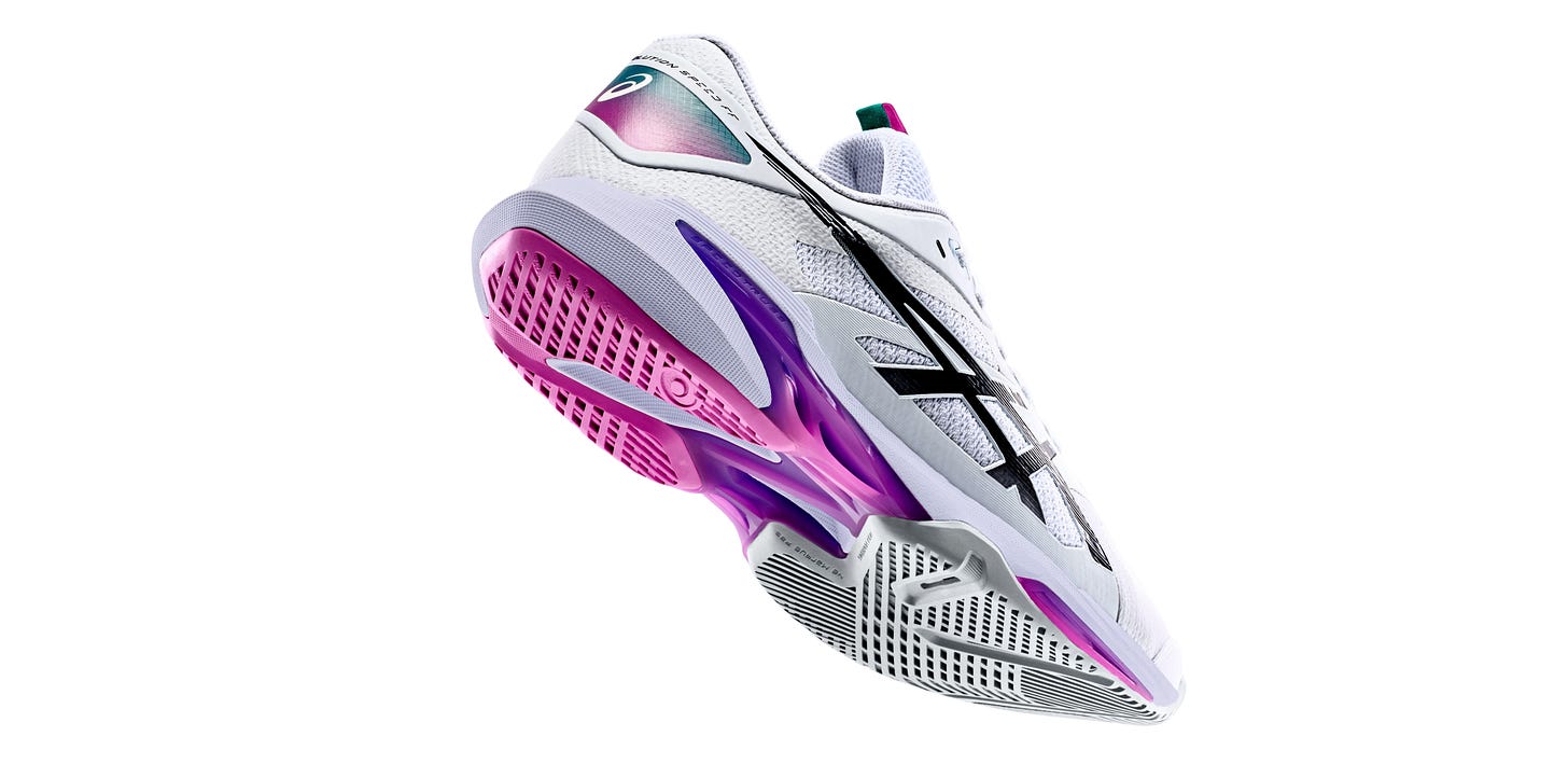 ASICS arranca el año ampliando su catálogo de zapatillas con el lanzamiento de las SOLUTION SPEED™ FF 4 , un modelo diseñado para maximizar la aceleración y el movimiento dinámico en pista, sin renunciar a la comodidad ni a la tracción.