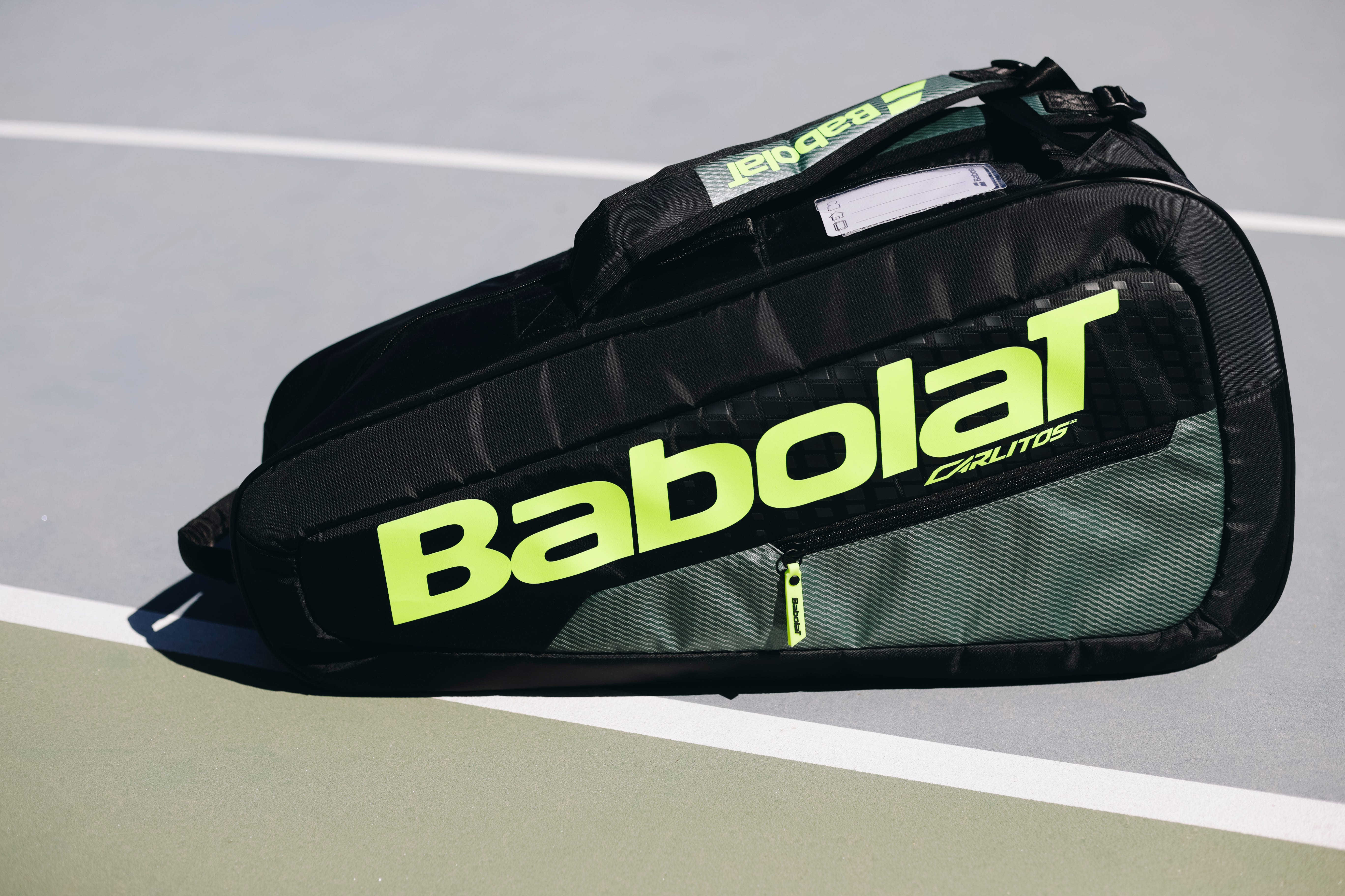 La colección no se limita a las raquetas. Babolat ha incluido también una bolsa específica, RH Carlitos Junior, diseñada para transportar hasta tres raquetas junto con el resto del equipamiento.