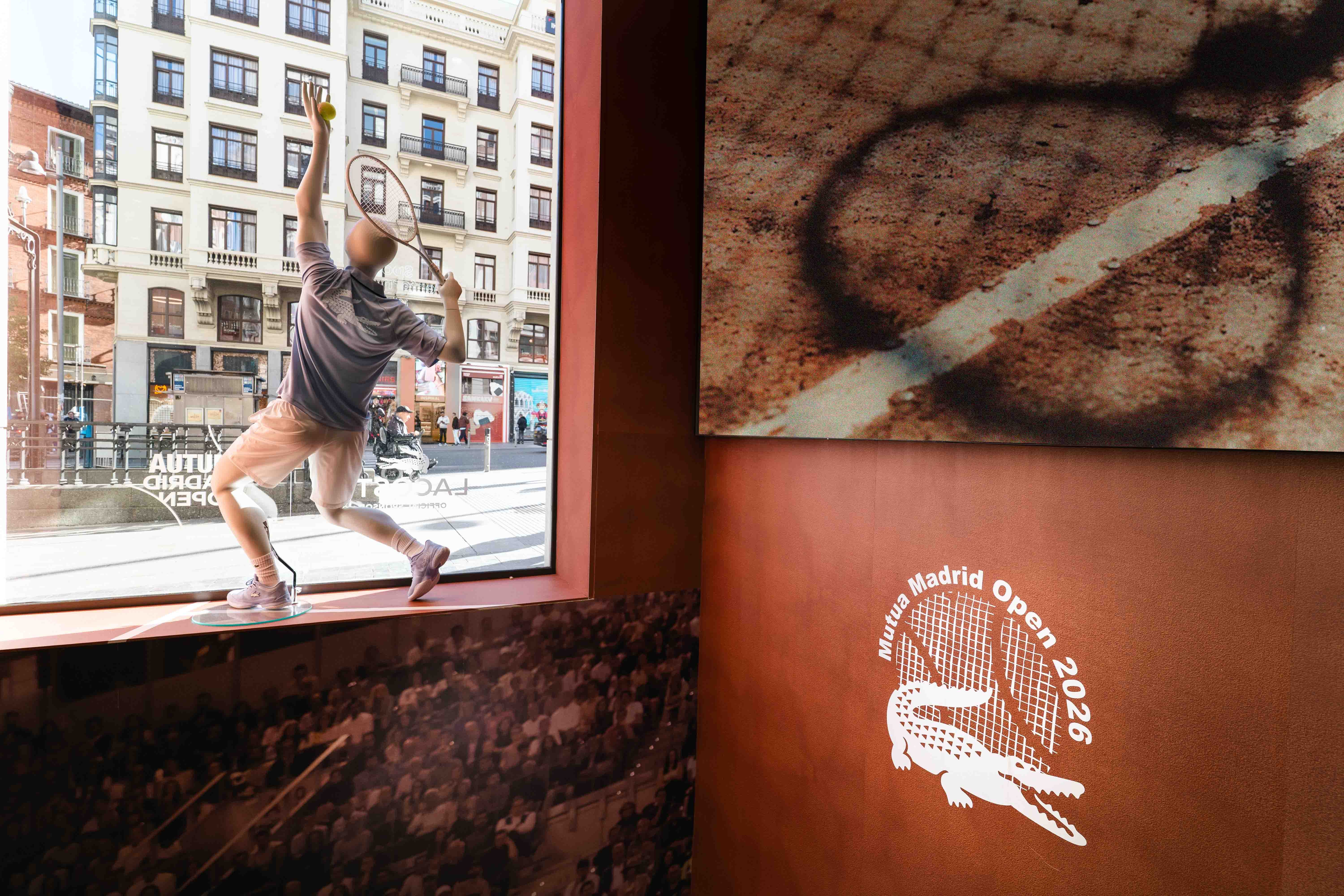 La estrategia de Lacoste no se limita al recinto deportivo. La marca traslada el espíritu del torneo a puntos clave de la ciudad como Gran Vía, Serrano o el aeropuerto Adolfo Suárez Madrid-Barajas.
